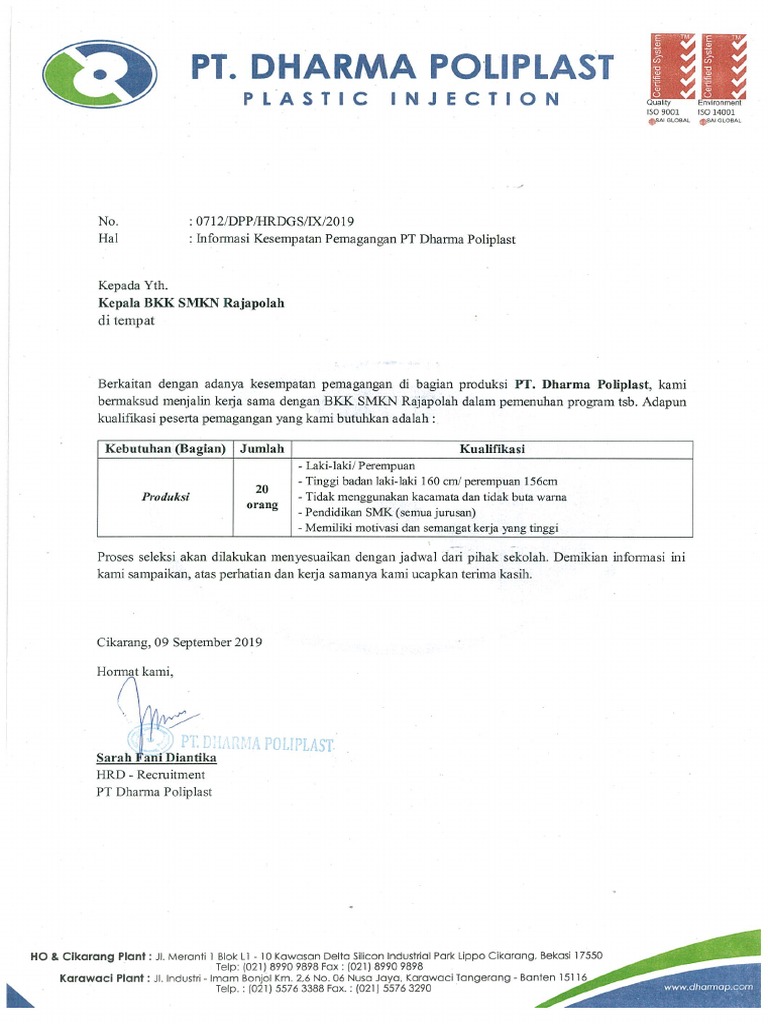 Psikotes Pt Dharma Poliplast : Smk Gondang Wonopringgo Tes Pt Dharma Poliplast Youtube : Check spelling or type a new query.